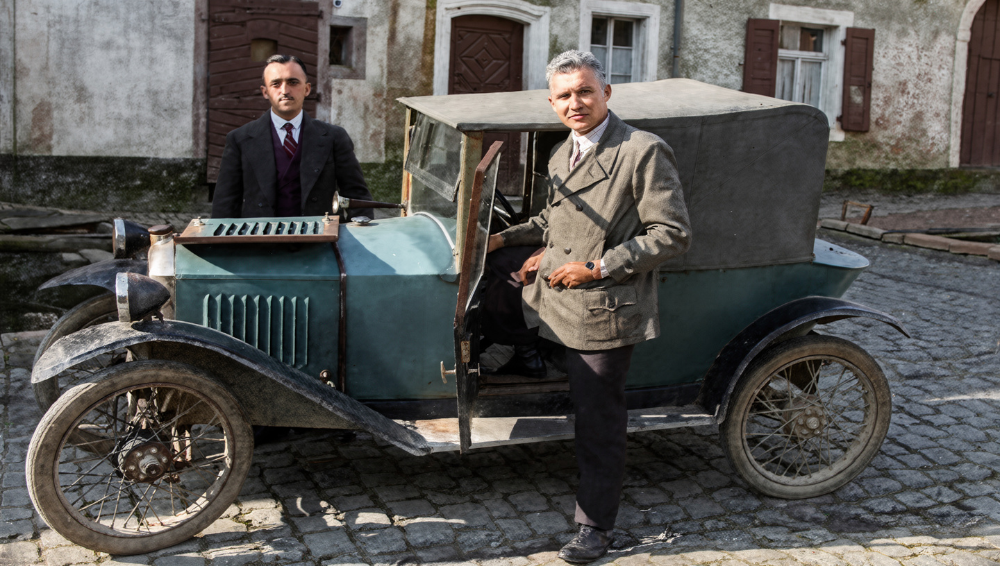 Jakob Streit im Jahre 1936 mit seinem NSU Dixi vor dem Hause Thiel in der Hachtstraße
