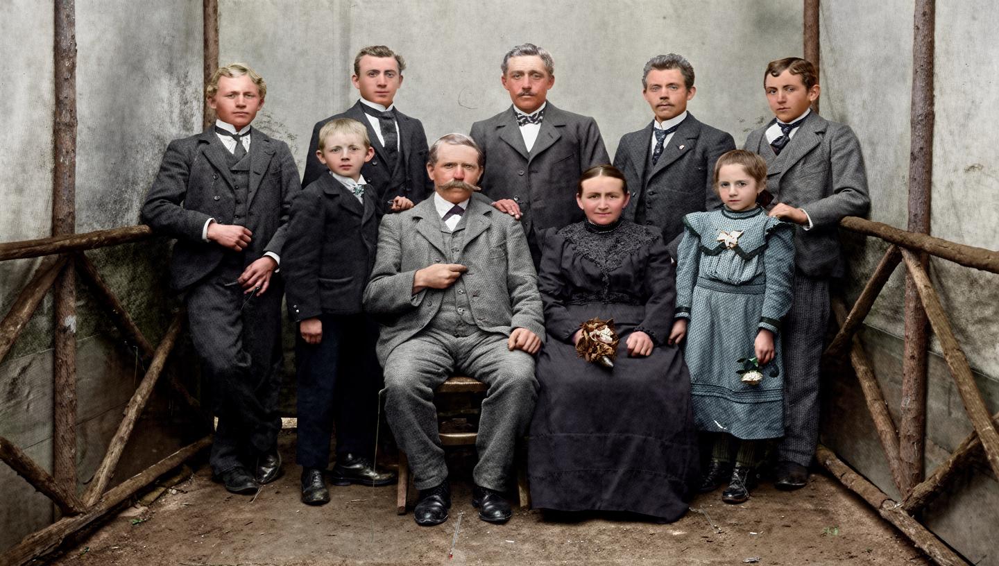 Familie Hardt - Blesius, von links: Josef, Bernhard, Paul, Vater Michel, Leonhard, Mutter Anna, Mädi, Eva und Martin