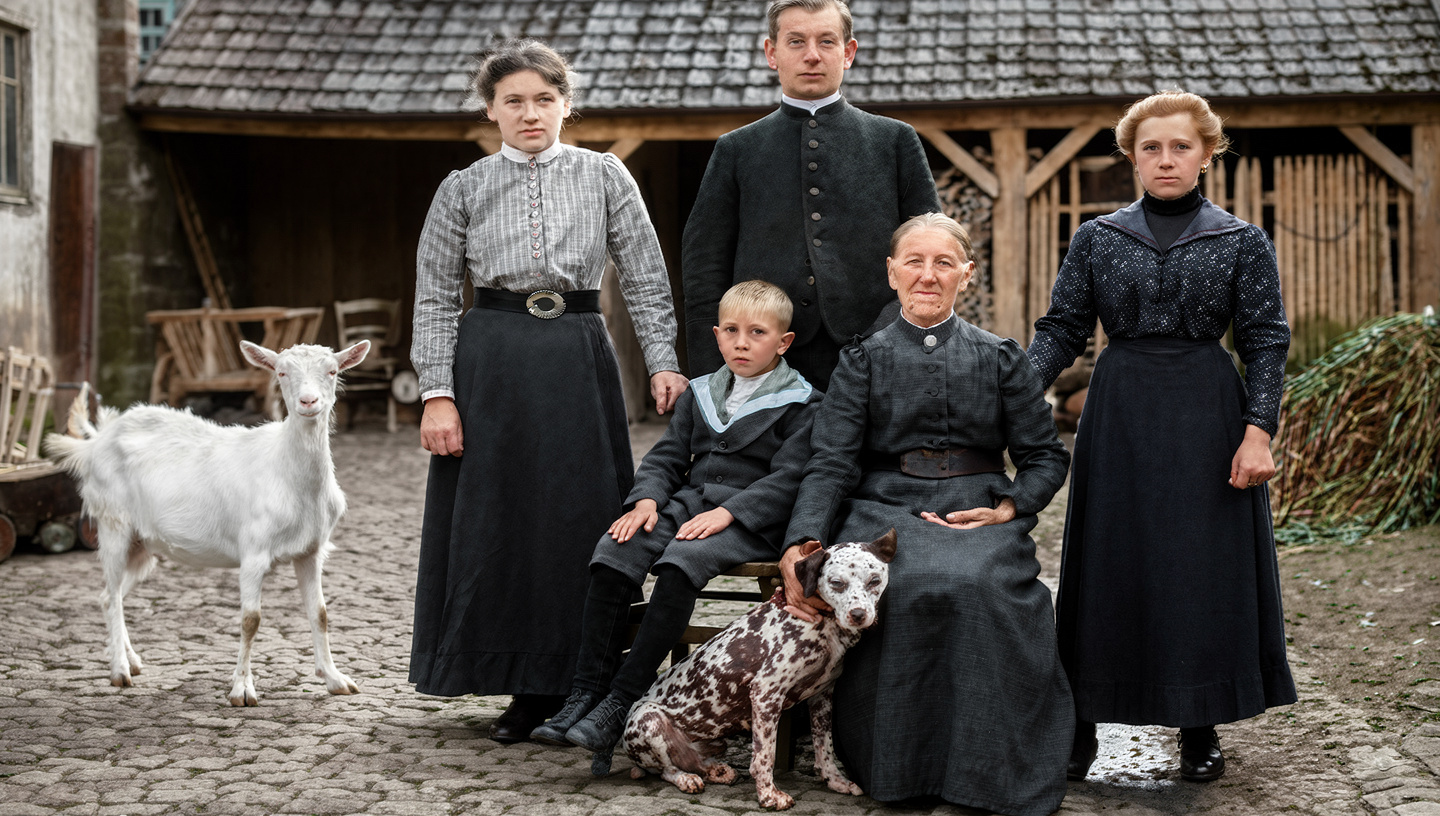 Familie Weiler (Bildmitte Pastor Jakob Weiler) vor dem Tonschuppen der Familie Wingenter in der Neugasse