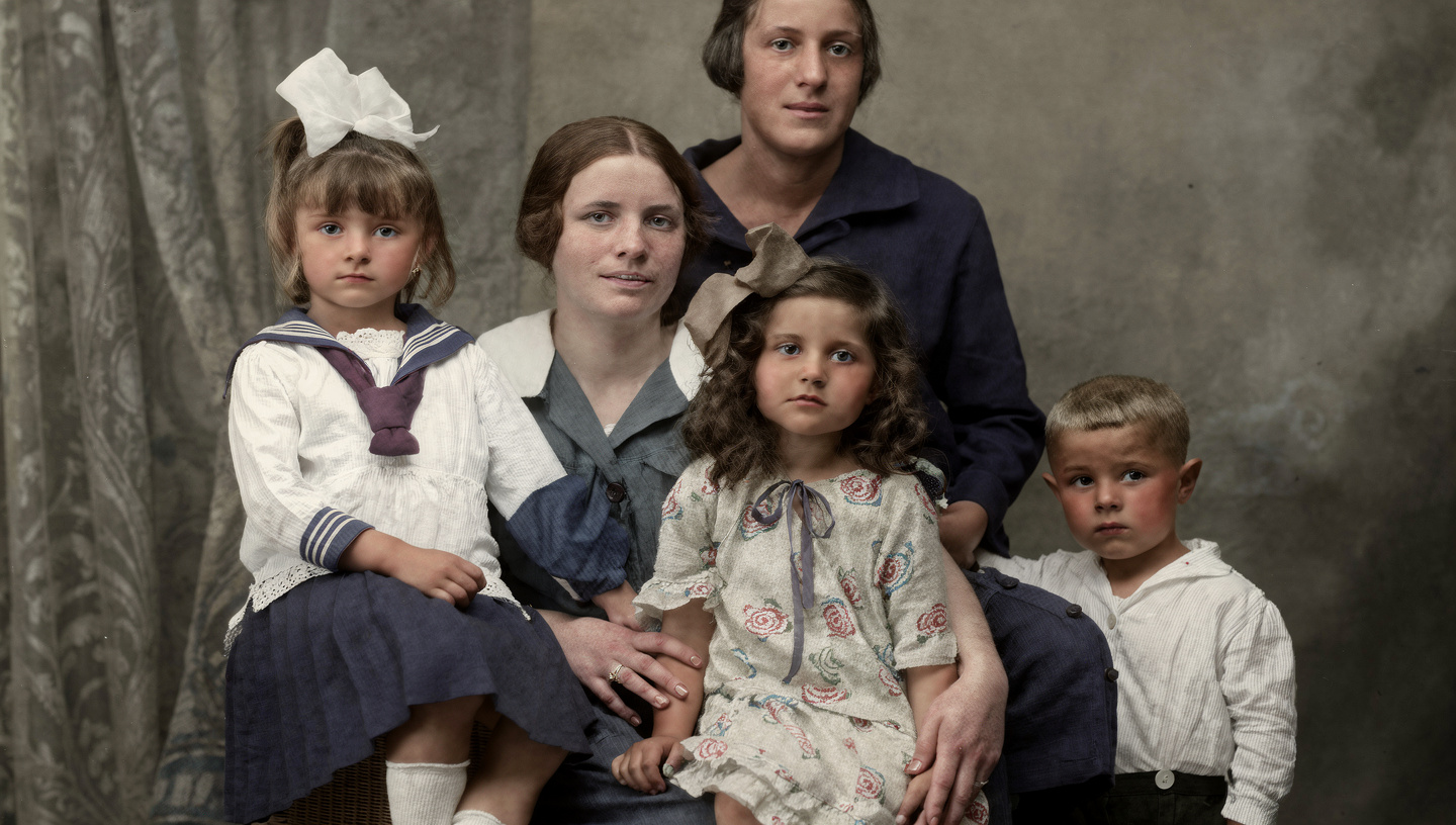 Die Schwestern Anna und Gredi Wolf um 1926 mit ihren Nichten Irma Becker, Käthi Wolf und Neffe Otto. Kurz nach dieser Aufnahme wanderten Irma und Otto Becker mit ihren Eltern nach Chikago/USA aus.