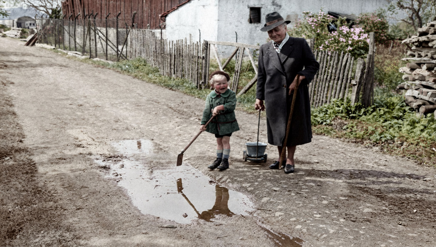 Die Weinstraße um 1943 Wasserpfützen besitzen für Kinder eine große Anziehungskraft