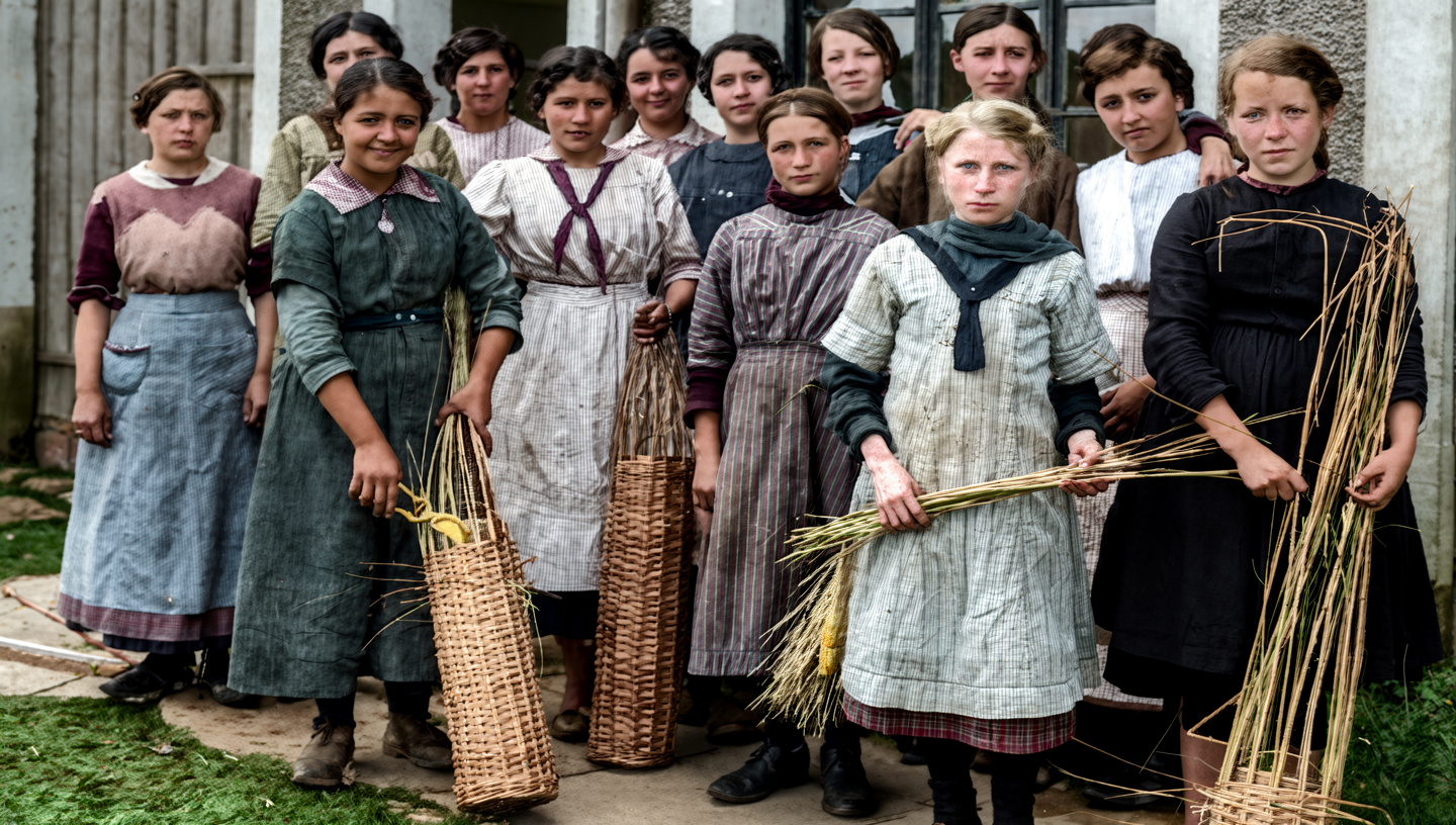 Weibliche Belegschaft der Korbmöbelfabrik Geiser