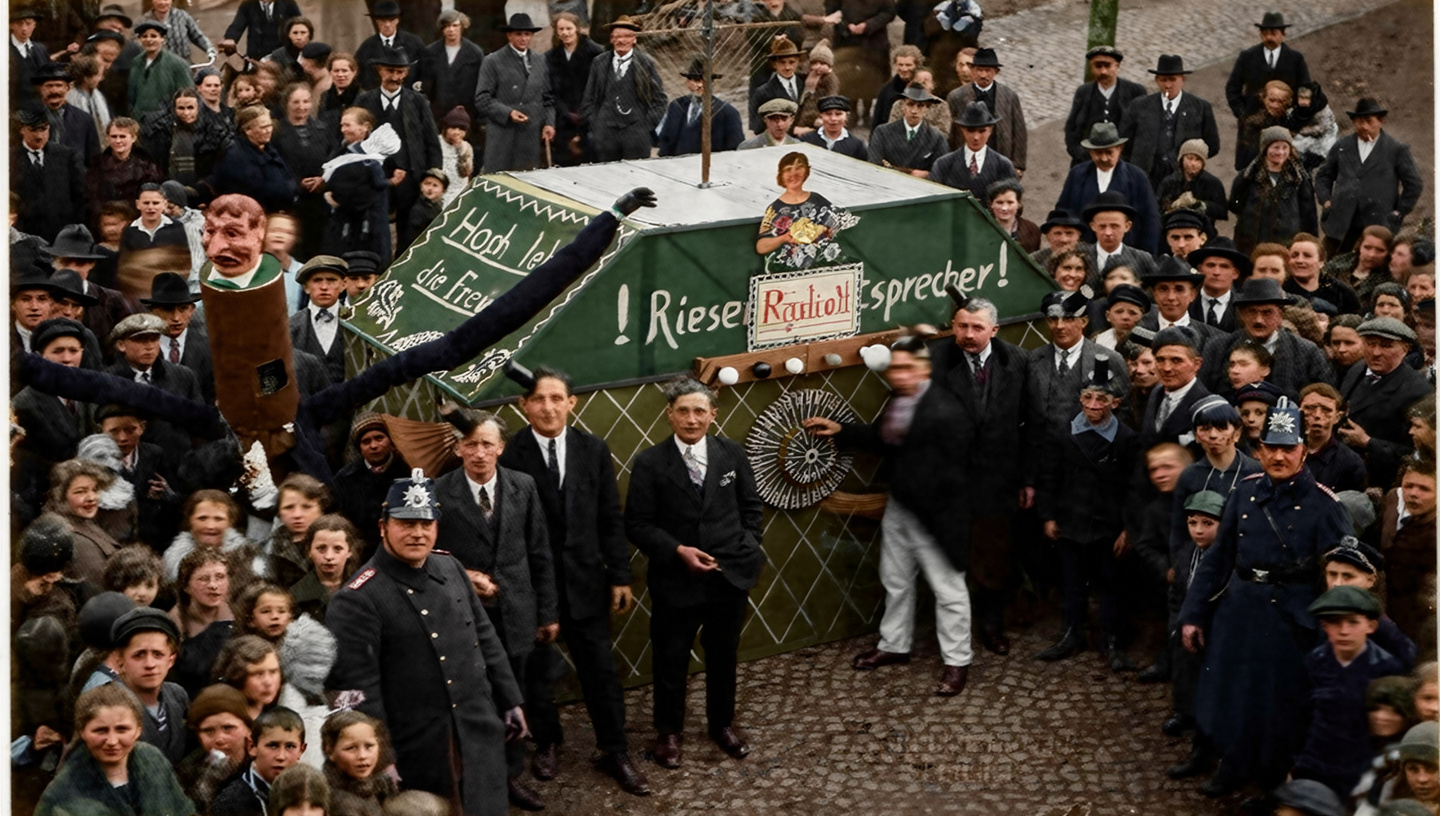 Diese Aufnahme entstand beim Umzug des Jahres 1927 oder 1928. Vor dem Wagen v.l.: Gendarm Greis, Johann Willems, Matthias Schneider, Willi Grün, Johann Reichertz