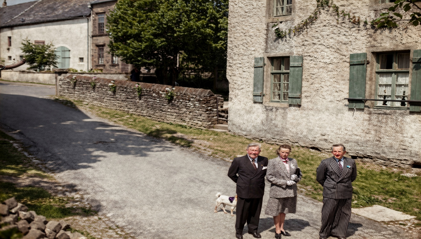 Im Hühnergarten um 1942: Giebelseite des Bauernhauses Reichertz mit Blickrichtung auf die Häuser der Familie Plein-Wagner im Merscheiderweg