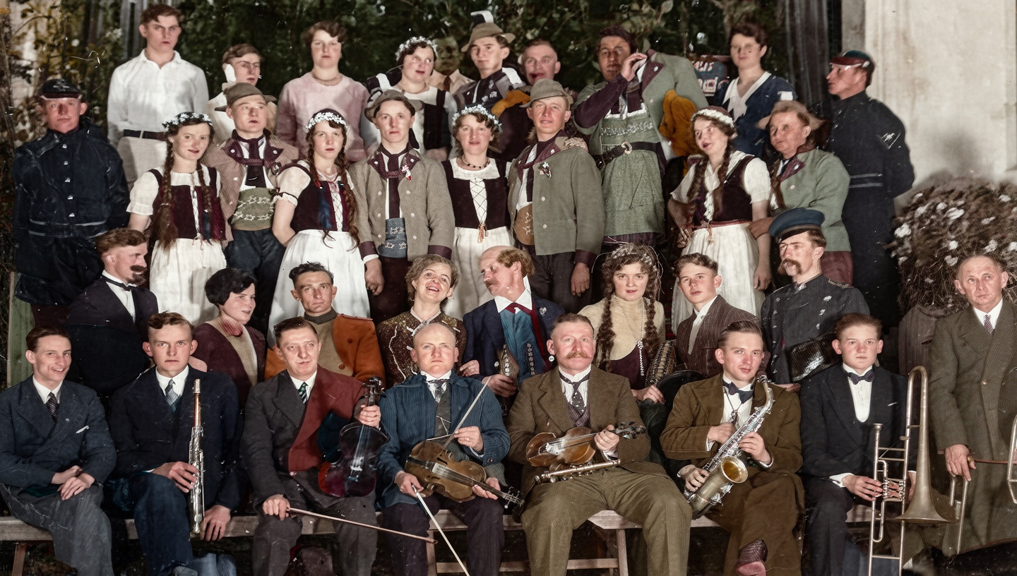 "Wenn der Himmel hängt voller Geigen" - Operette, eingeübt von Organist Zehren Erste Reihe v.l.: Matthias Schneider, Wingenter, Schömann, Matthias Maus, Matthias Zehren, Josef Wintrich, …